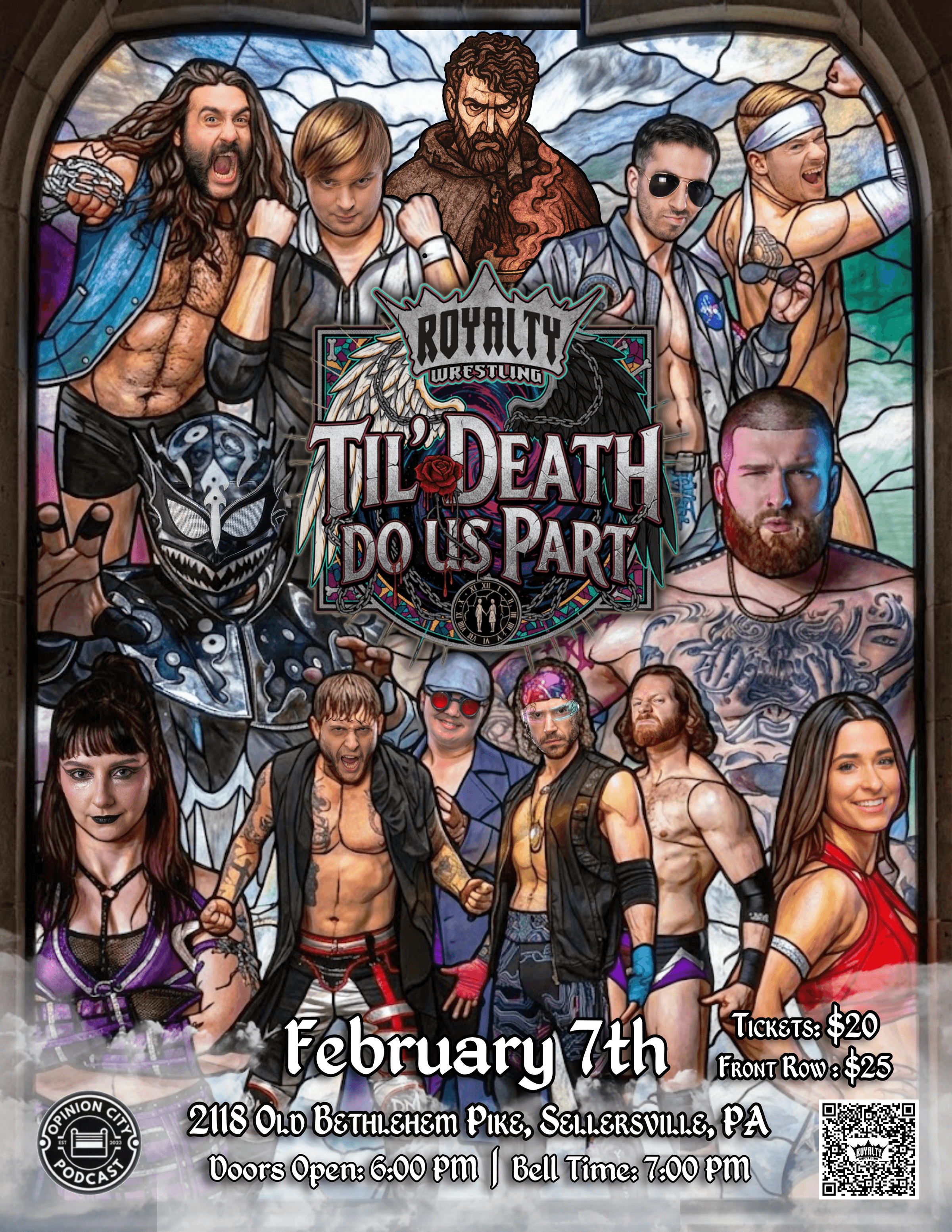 "On February 7th, raise thy banners high, noble fans for Royalty Wrestling returns with Til' Death Do Us Part! Cheer for your champions and jeer the dastardly knaves! A grand spectacle for all ages! Secure thy tickets now and witness the clash of valor and villainy!"